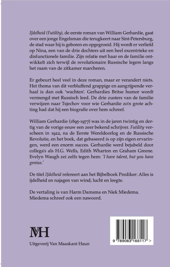 Volgende maand verschijnt IJdelheid van William Gerhardie, de roman – zijn eerste – die hij 100 jaar geleden publiceerde. De vertaling is van Harm Damsma en Niek Miedema. Niek schreef ook het nawoord. Gerhardie was een groot bewonderaar van Tjechov en dat wordt duidelijk wanneer men de roman leest.